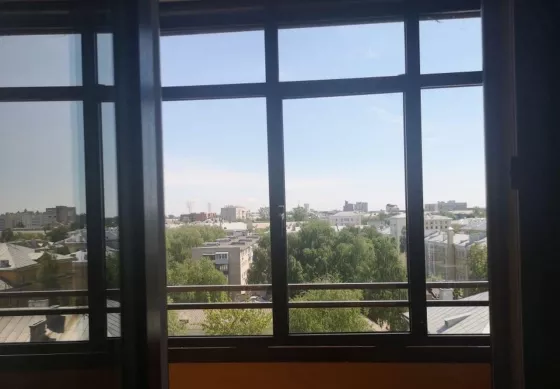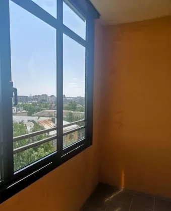 Квартира находится на девятом этаже, в новом доме, в центре города. Прекрасный вид из окна на город. Окна квартиры выходят на две стороны дома. Лифт большой ходит до этажа. в квартире остаётся кухонный гарнитур и новый диван (еврокнижка).